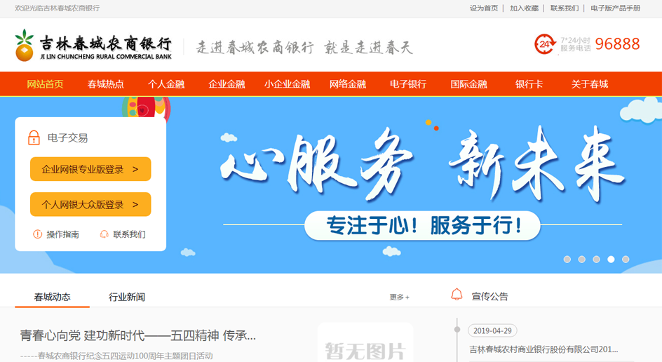 吉林春城农商银行以“坚韧不拔的创业精神、同心协力的团队精神、干干净净的做人品质”为企业核心文化,以支持地方经济发展为己任,联动城乡,积极服务新型城镇化建设,秉承“服务三农、服务企业、服务社区”的商业银行战略定位,为客户提供全方位优质化服务,始终坚持以客户满意为目标,提供诚心、专心、用心、贴心、全心的服务,进一步完善服务网络、提升服务品质,积极引入互联网金融思维,大力发展创新业务,为各层次客户提供全方位、多元化的金融服务。